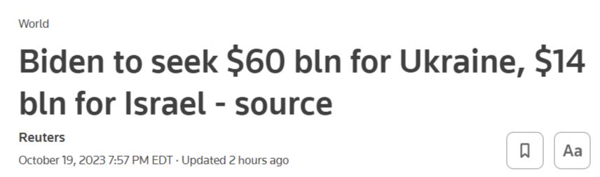 Tomorrow he is set to make a landmark request for a massive $74B to support genocide, both in the continuation of barbaric Ukrainian slaughter of civilians, which has gone on for 9 years, and Israel’s barbaric ethnic cleansing of Palestine.